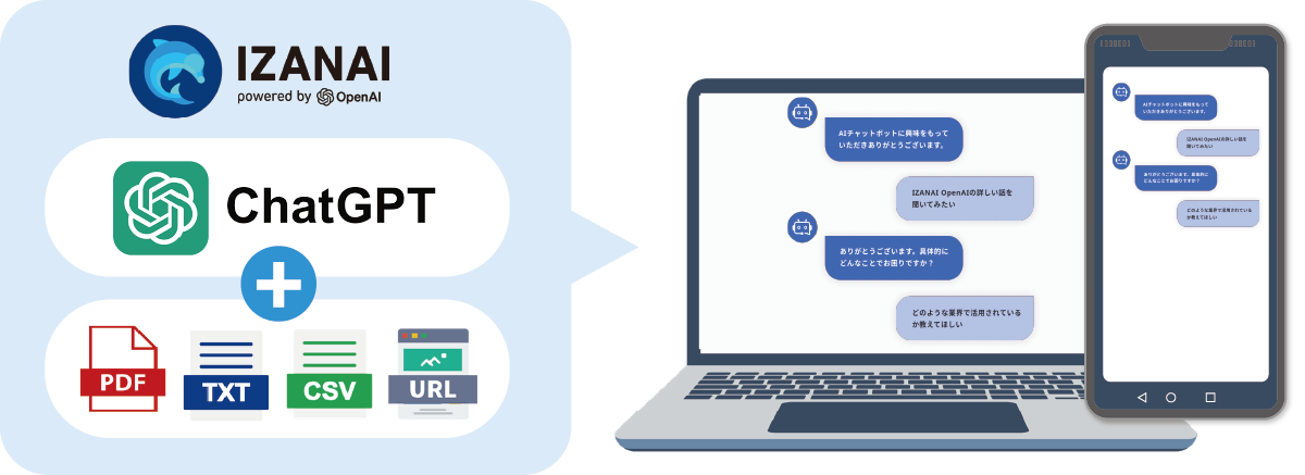 IZANAI(Powered by OpenAI)は、PDFやURLを登録するだけでFAQチャットボットを作成できるサービスで、